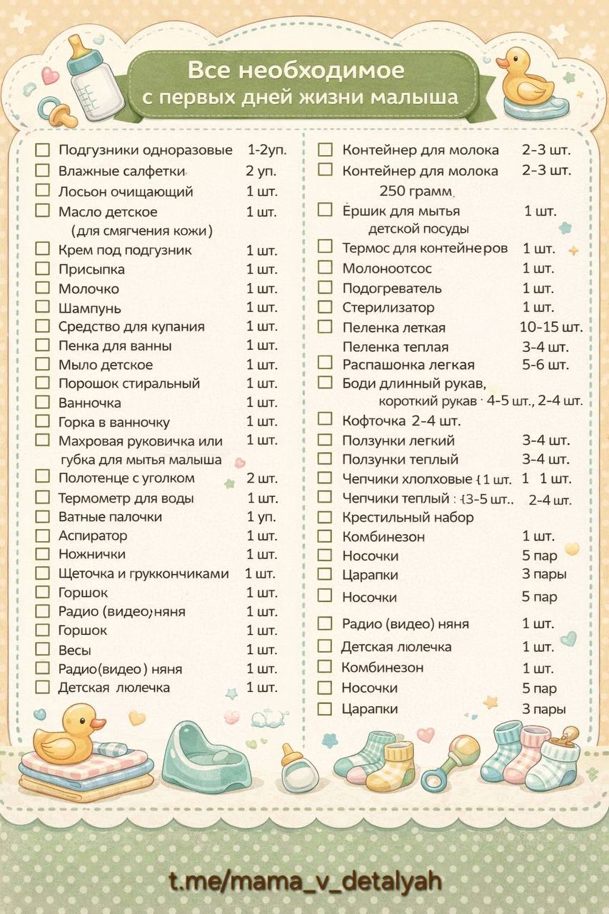✅ Составить список покупок для малыша. Не спеша, без паники — постепенно собирать необходимое