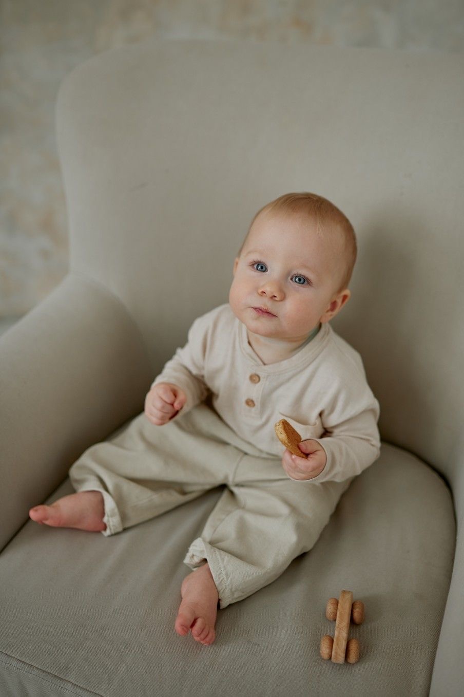 В 6 месяцев он сидит, хватает игрушки, пробует прикорм. В 8–9 месяцев — ползёт, встаёт у опоры, появляются первые зубки. В 10–12 месяцев — делает первые шаги, говорит «ма-ма» и «па-па», показывает пальцем, что хочет.